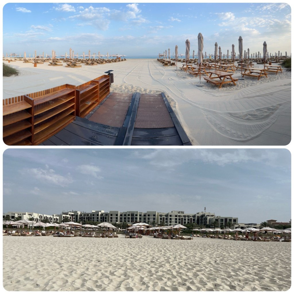 We had a great direct flight from Sydney to Abu Dhabi on Etihad. Leaving at 9pm with a 5am arrival meant that we ate a bowl of pasta each en route to the airport and then went straight to sleep on board. No food, (almost) no drinks (well, none for her) and a good long sleep. We had enough Etihad points to grab a hotel room to cover the 40 hours we were in town. And not just any hotel either, but the Hyatt no less. On an island no less. One of the natural islands, not one of the many man made ones. Actually, it’s a rather large sand dune, but the Emirati imported lots of greenery to make it look natural. And, of course, the grounds of the hotel are spectacular