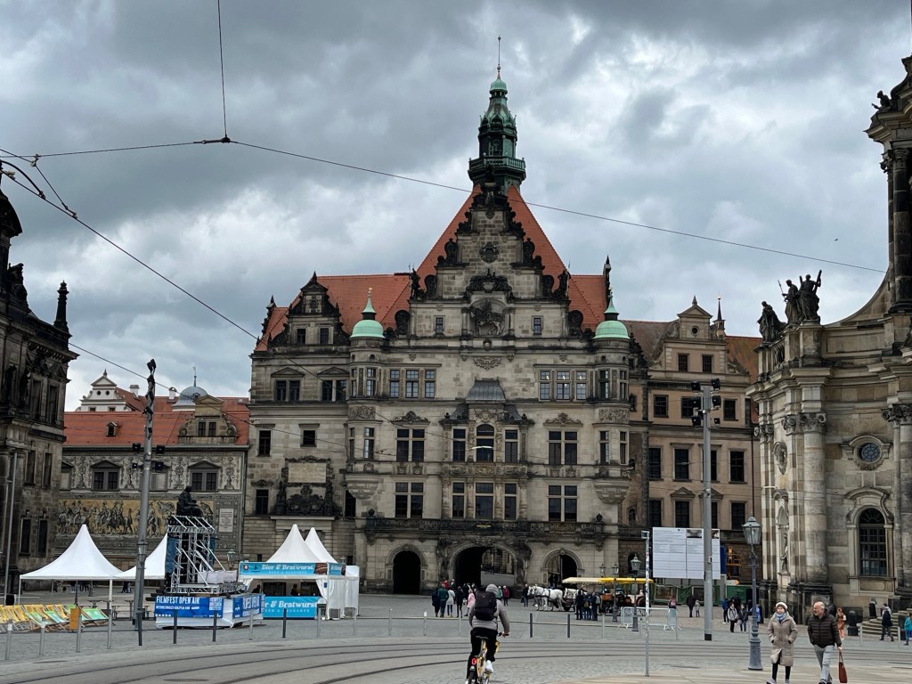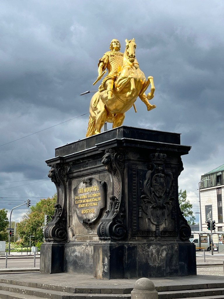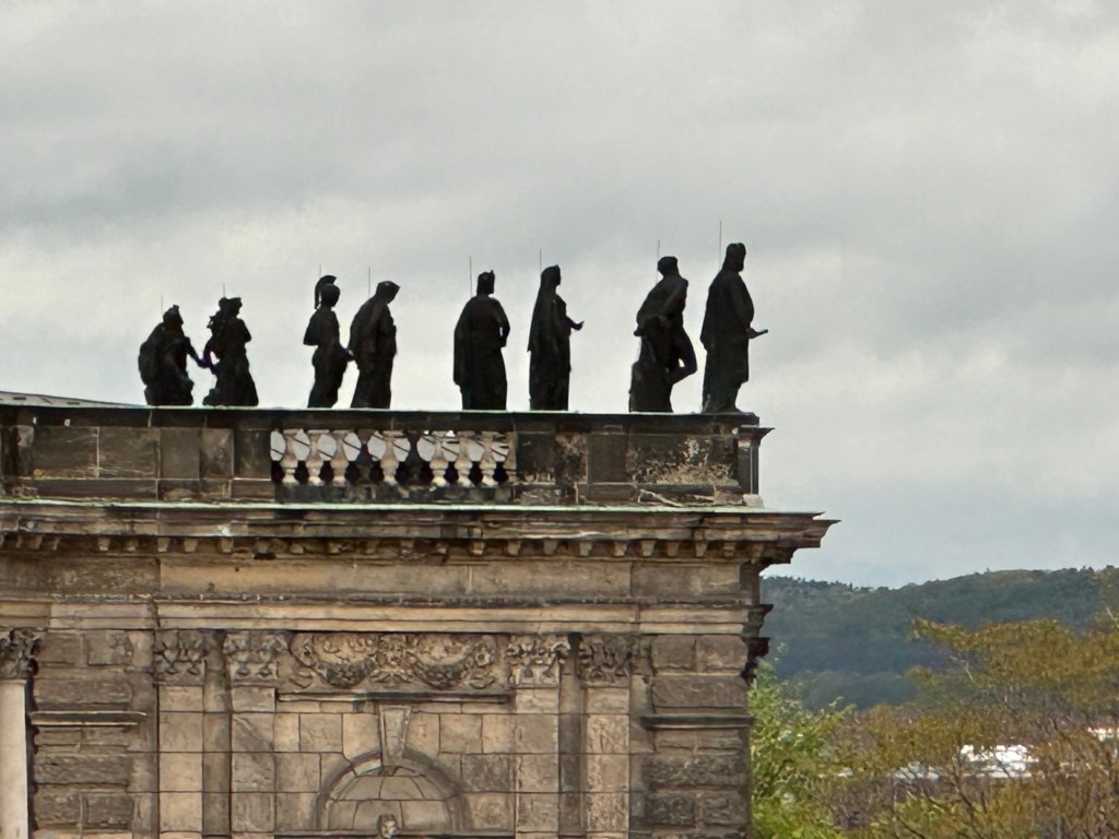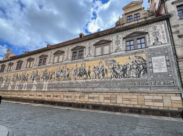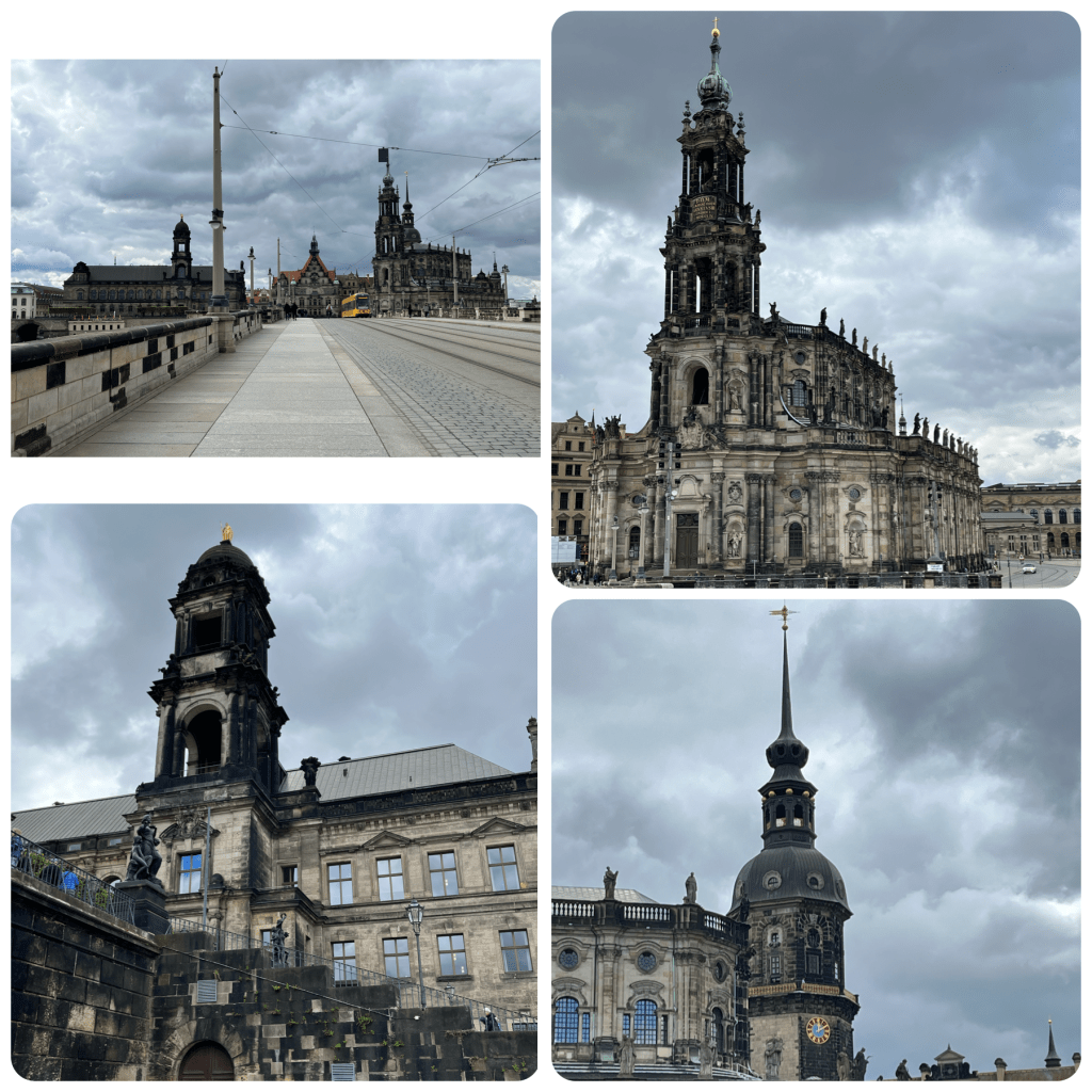 We also visited what is called The Green Vault within the Palace. No cameras allowed. High security to get in. It contains the largest treasure collection in Europe, founded in 1723 by Augustus the Strong of Poland and Saxony. It took all our strength not to over react to this gauche collection. It was severely damaged in the 1945 bombing, three of the eight rooms were totally destroyed. At the end of the war the collection was confiscated by the Red Army and transferred to the Soviet Union. Returned to Dresden in 1958 and reopened to the public in the early 2000’s.