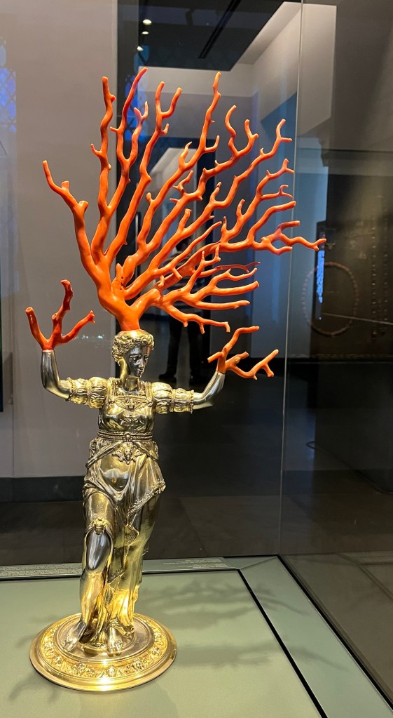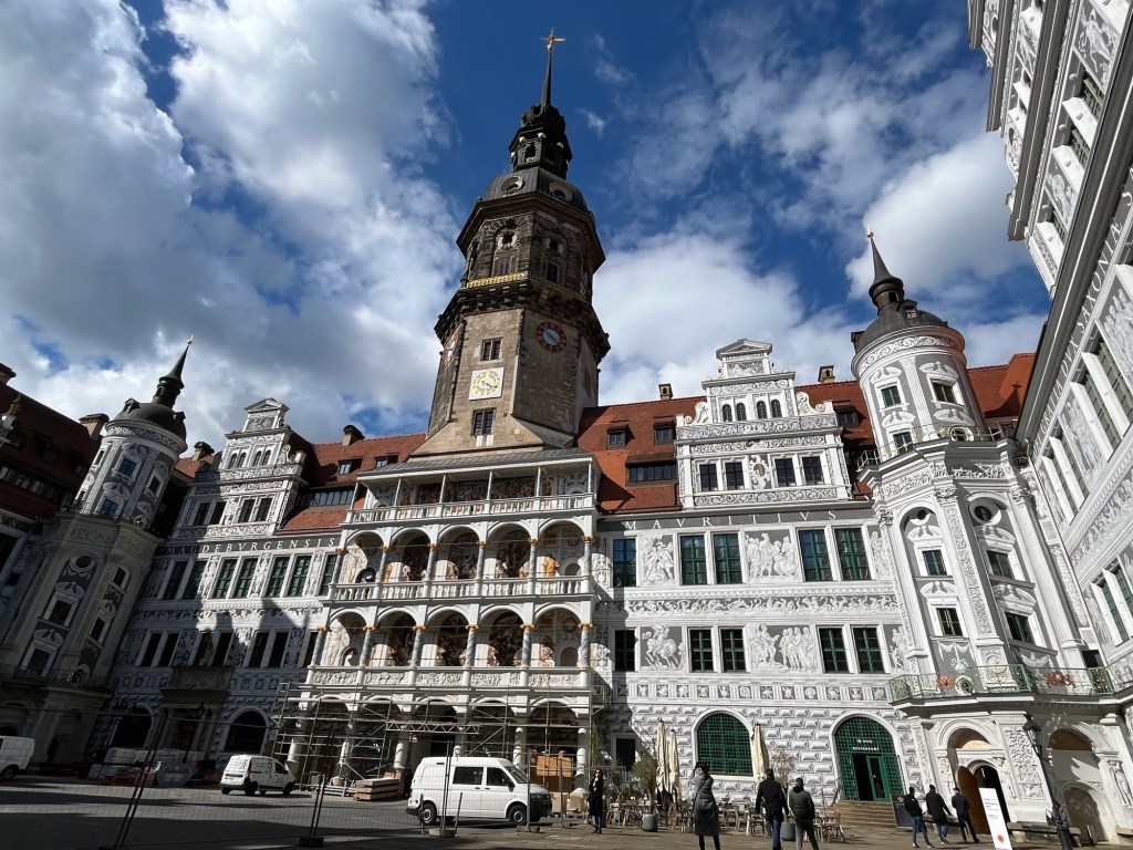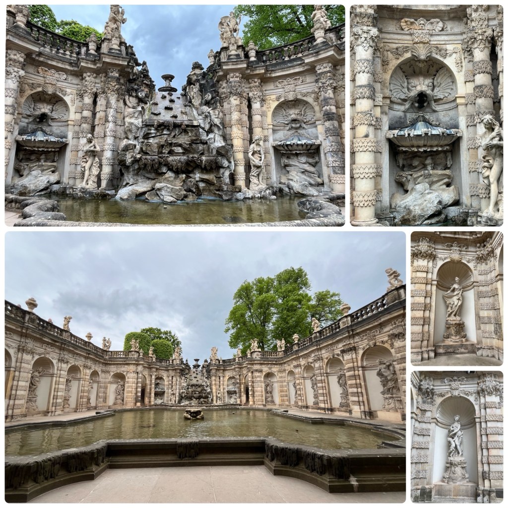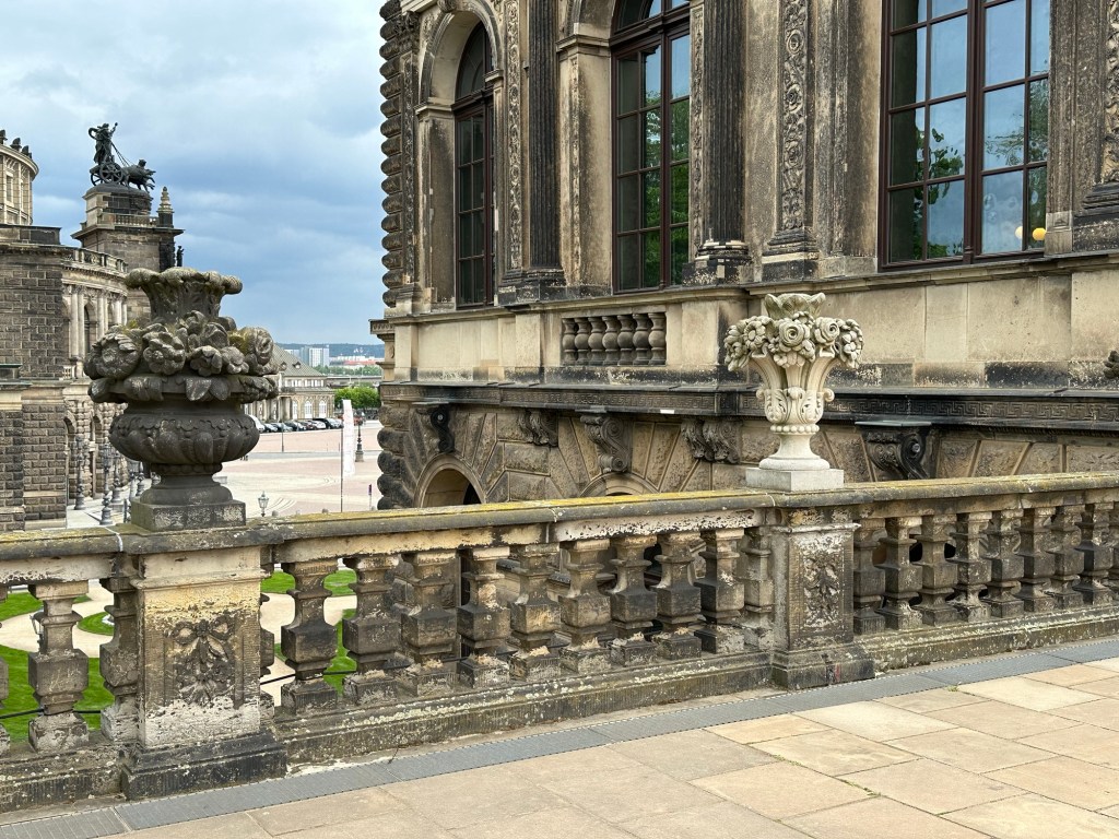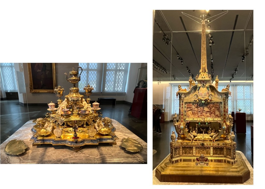 We also visited what is called The Green Vault within the Palace. No cameras allowed. High security to get in. It contains the largest treasure collection in Europe, founded in 1723 by Augustus the Strong of Poland and Saxony. It took all our strength not to over react to this gauche collection. It was severely damaged in the 1945 bombing, three of the eight rooms were totally destroyed. At the end of the war the collection was confiscated by the Red Army and transferred to the Soviet Union. Returned to Dresden in 1958 and reopened to the public in the early 2000’s.