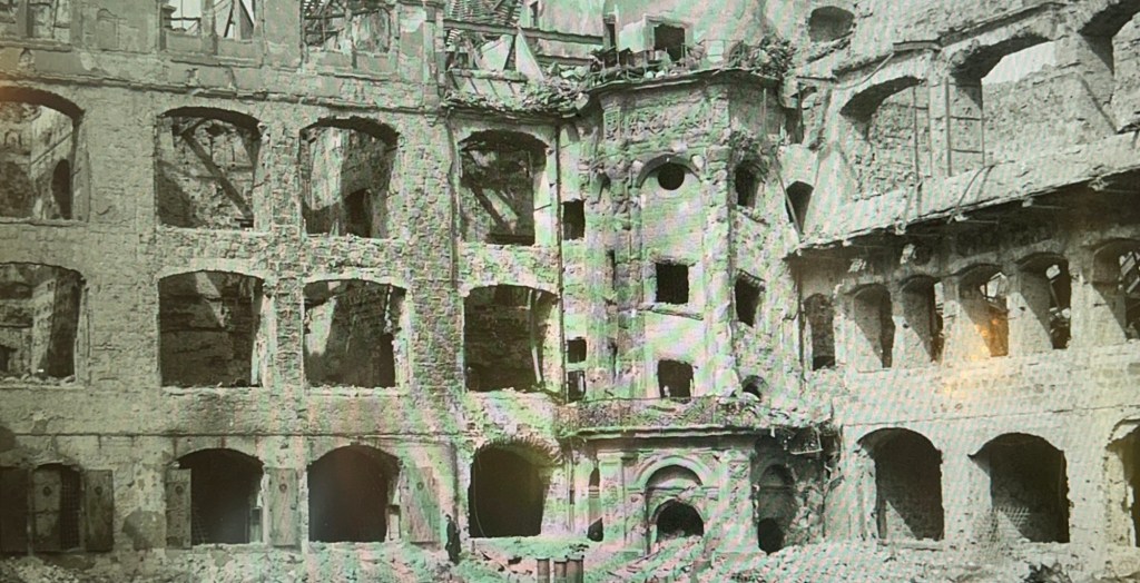 In February 1945 Britain and America bombed the be-you-know-who out of Dresden and killed 25,000 people in the process. This beautiful city, with its palaces and castles, its artistic splendour, was wiped out. Rebuilding did not start until the reunification of Germany in the ‘90s and the restoration is remarkable. The damage is not hidden, buildings are both burnt black and new sandstone clean. The black is what remained of the original and the new sits in stark contrast.
