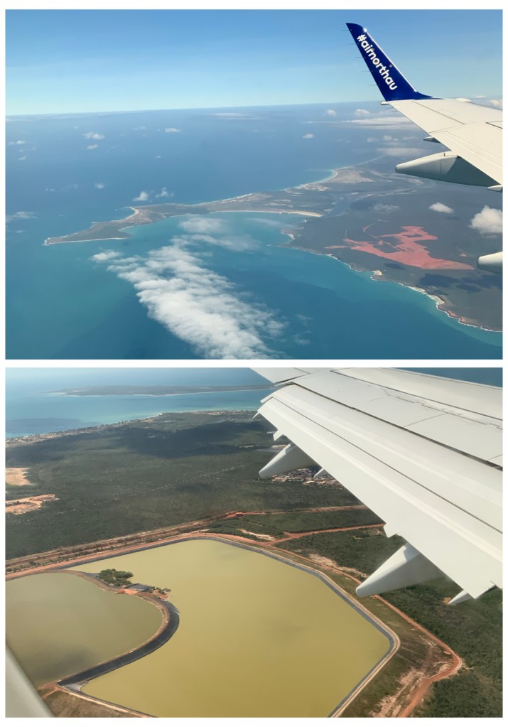 Taxi to the airport where we check in for our flight to Nhulunbuy. We cunningly clock some other elderly folk with matching back packs, just like ours, provided in advance by the tour company, along with our name badges. Thank heavens I don’t have to carry my drivers licence with me every day to remind me who I am. I just look at my badge. If I remember. Anyway, as I was saying, we board the 100 seat plane with 98 others. A smooth 2 hour flight to Gove (as the airport is called and we land about 2pm