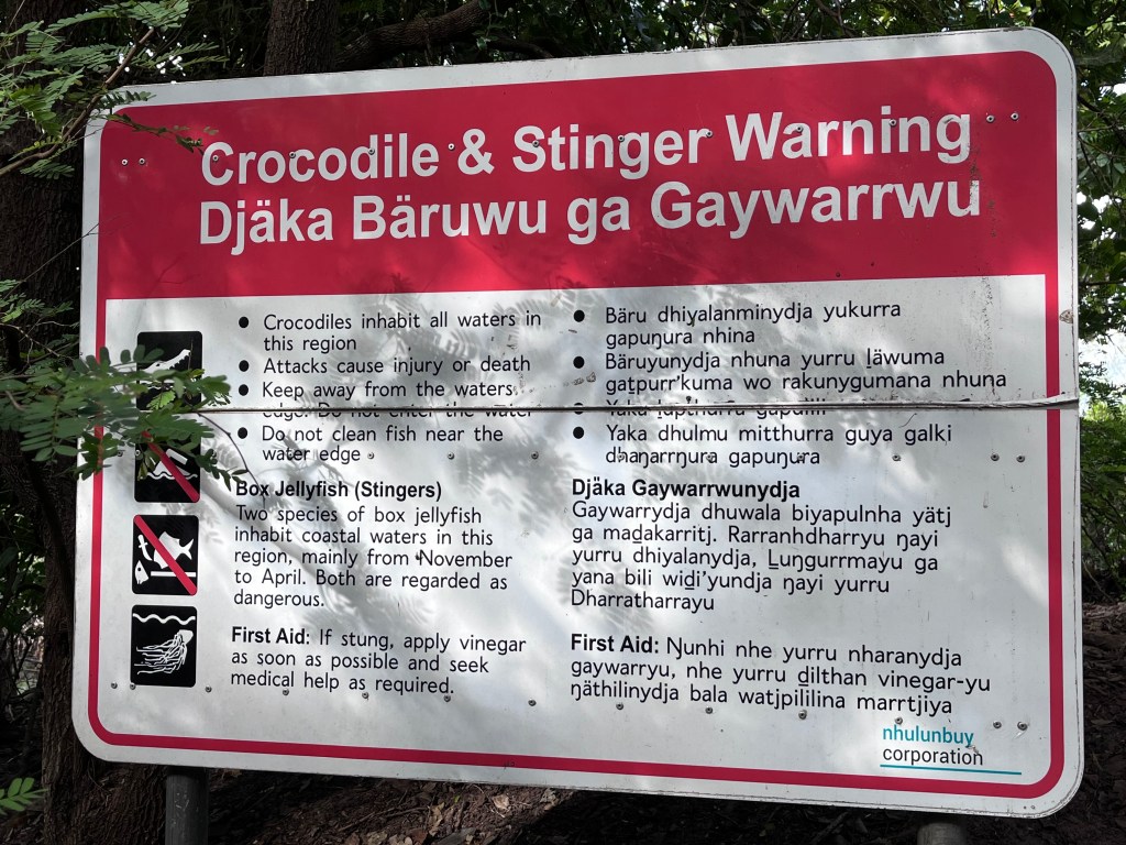 and we are met by Greg. Now Greg is an Aussie, through and through. He is also our tour guide. For the next 13 days. We are a group of 14. Plus Greg. Greg leads us to a bus. And I mean a bus. A coach. He loads our soft luggage, max 15kgs per person, plus maximum 3kg back pack, into the bus. We board. Greg then dons a headset microphone and starts to talk. We can’t hear him. “It’s crap” he says, but “it is what it is”. Cherrie hears much of what he says, and apparently he did apologise for the sound and advised that he’s asked for a replacement. I hear little of what Greg says. If he speaks up it’s ok but he’s a mumbler. But what everyone hears is that the roads throughout the top end are flooded or washed away by recent rains and are therefore impassable. That nice 4WD Merc van I was looking forward to is stuck on the other side of the collapsed road. We won’t be driving the top end, we’ll be flying it. In 14 seat planes. Two of them, so that luggage and people can be evenly spread by weight. I’ll probably be on my own, with the bags. This news is clearly a disappointment for some, me included, but welcome news for others. Cherrie loves small planes. I prefer the roads. Anyway, in the words of Greg, it is what it is.We were to have a tour of the town today, but we’ve got the afternoon off instead. Tomorrow we do the local tour, including the community of Yirrkala. I’m very excited about that. We’ve got some beautiful artworks from Yirrkala, and it’s where the Garma Festival is held each year.